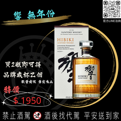 響無年份1950/瓶,買兩瓶+送一個原廠響高質感威士忌杯