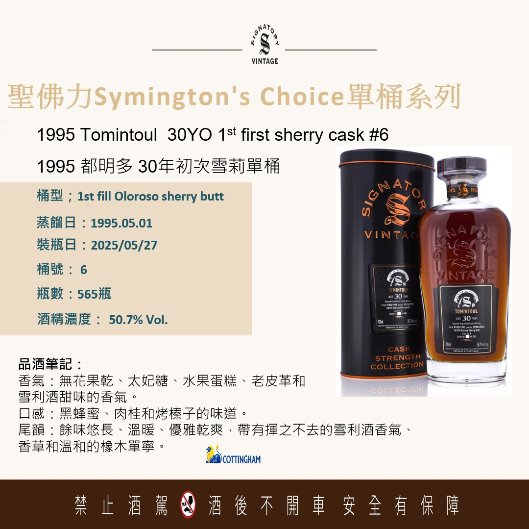 聖弗力 創辦人精選系列-都明多1995/30年 50.7% Signatory Vintage Symington Choice Tomintoul 1995/30yo 50.7%