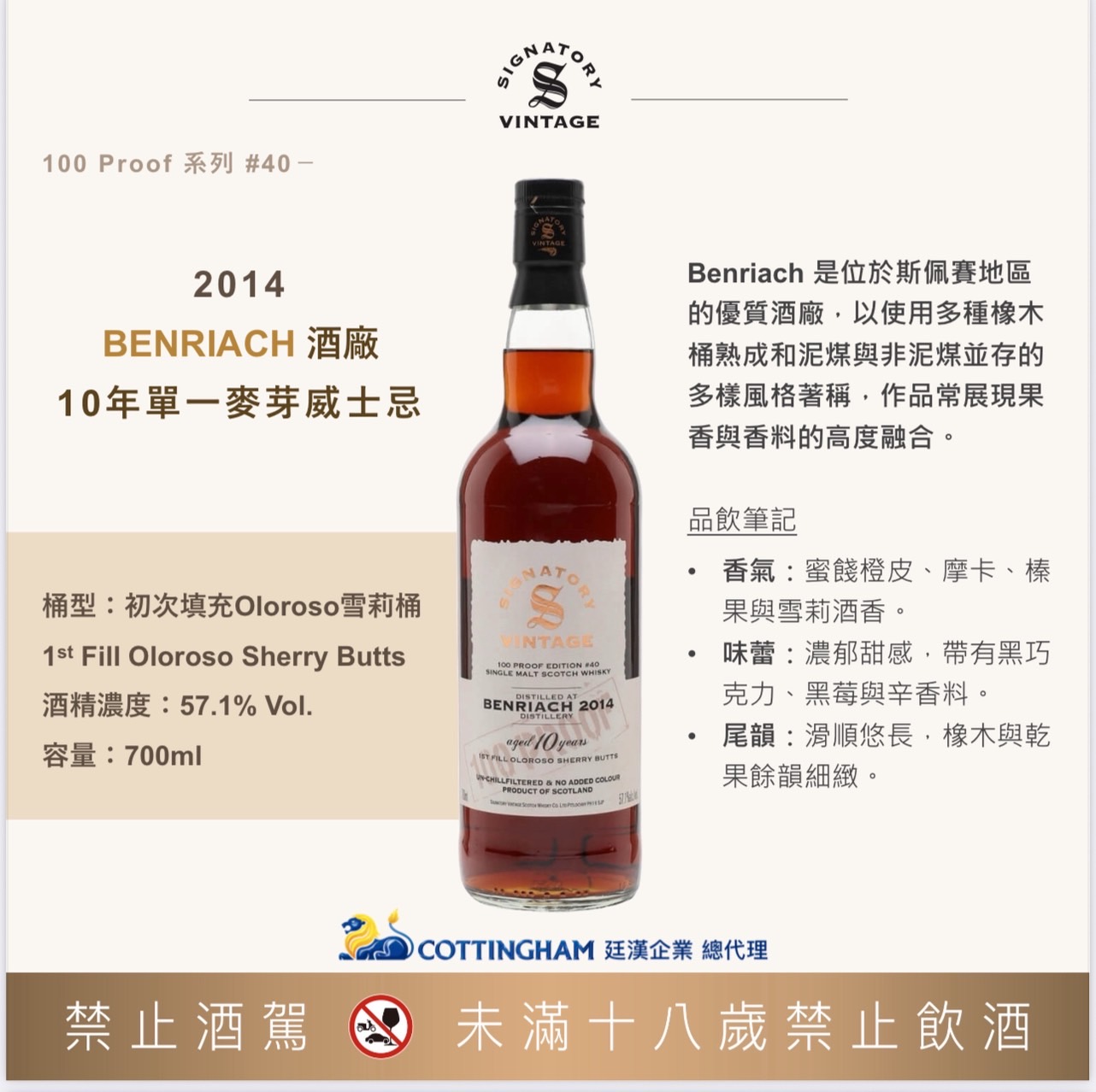 聖弗力 100PROOF 班瑞克2014/10年 #40 Signatory 100 Proof BENRIACH 2014/10yo #40