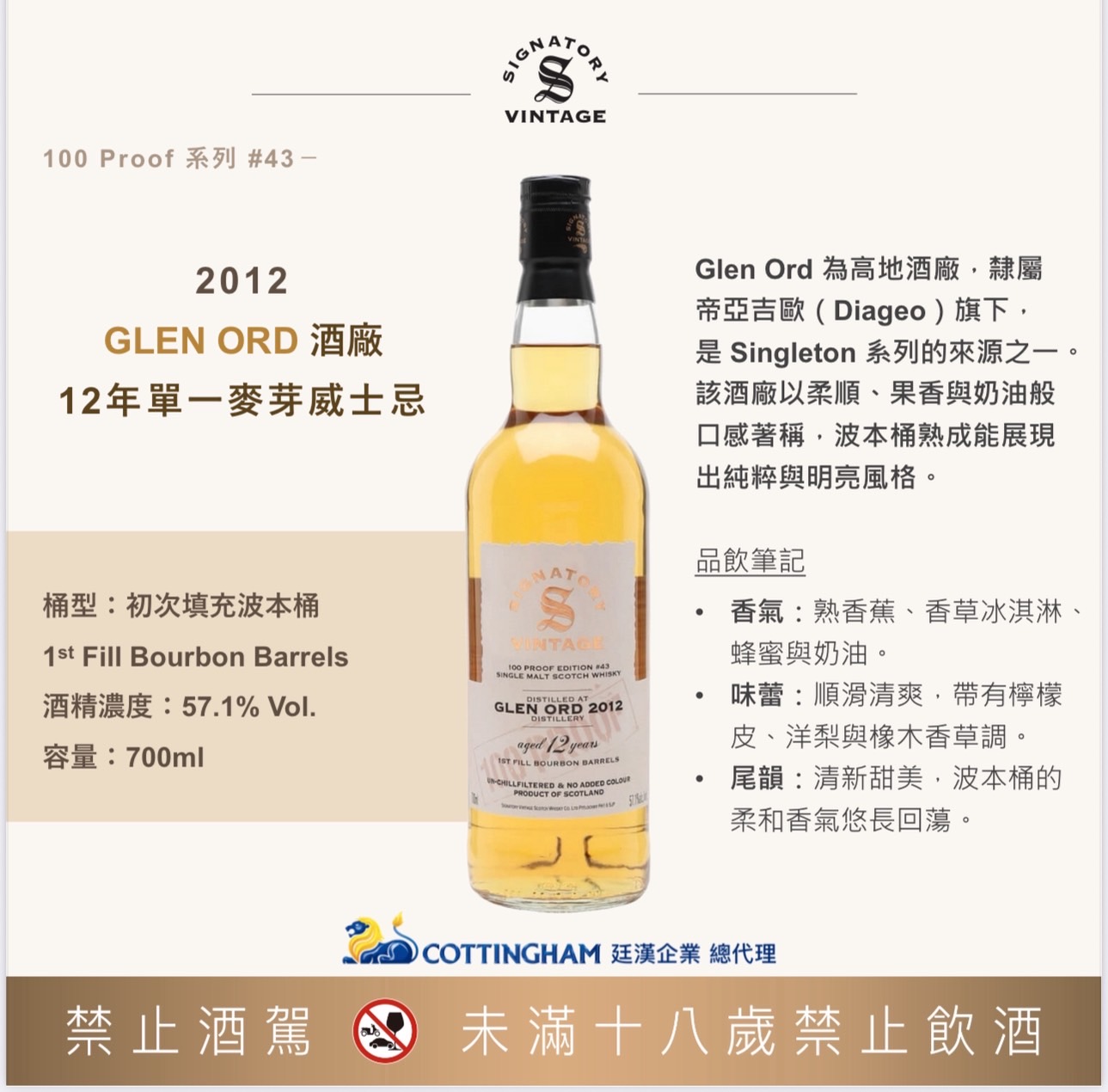 聖弗力 100PROOF 格蘭奧德2012/12年 #43 Signatory 100 Proof GLEN ORD 2012/12yo #43